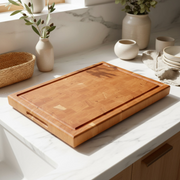Premium Cherry Hardwood – Crafted from warm, sustainably sourced cherry wood, prized for its fine, closed grain and natural smoothness. Cherry is a dense yet workable hardwood that resists warping and absorbs less moisture than softer woods, making it ideal for cutting boards. Over time, it develops a beautiful deep reddish patina that enhances its natural elegance.
