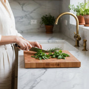 Cherry Hardwood – Crafted from warm, sustainably sourced cherry wood, prized for its fine, closed grain and natural smoothness. Cherry is a dense yet workable hardwood that resists warping and absorbs less moisture than softer woods, making it ideal for cutting boards. Over time, it develops a beautiful deep reddish patina that enhances its natural elegance.