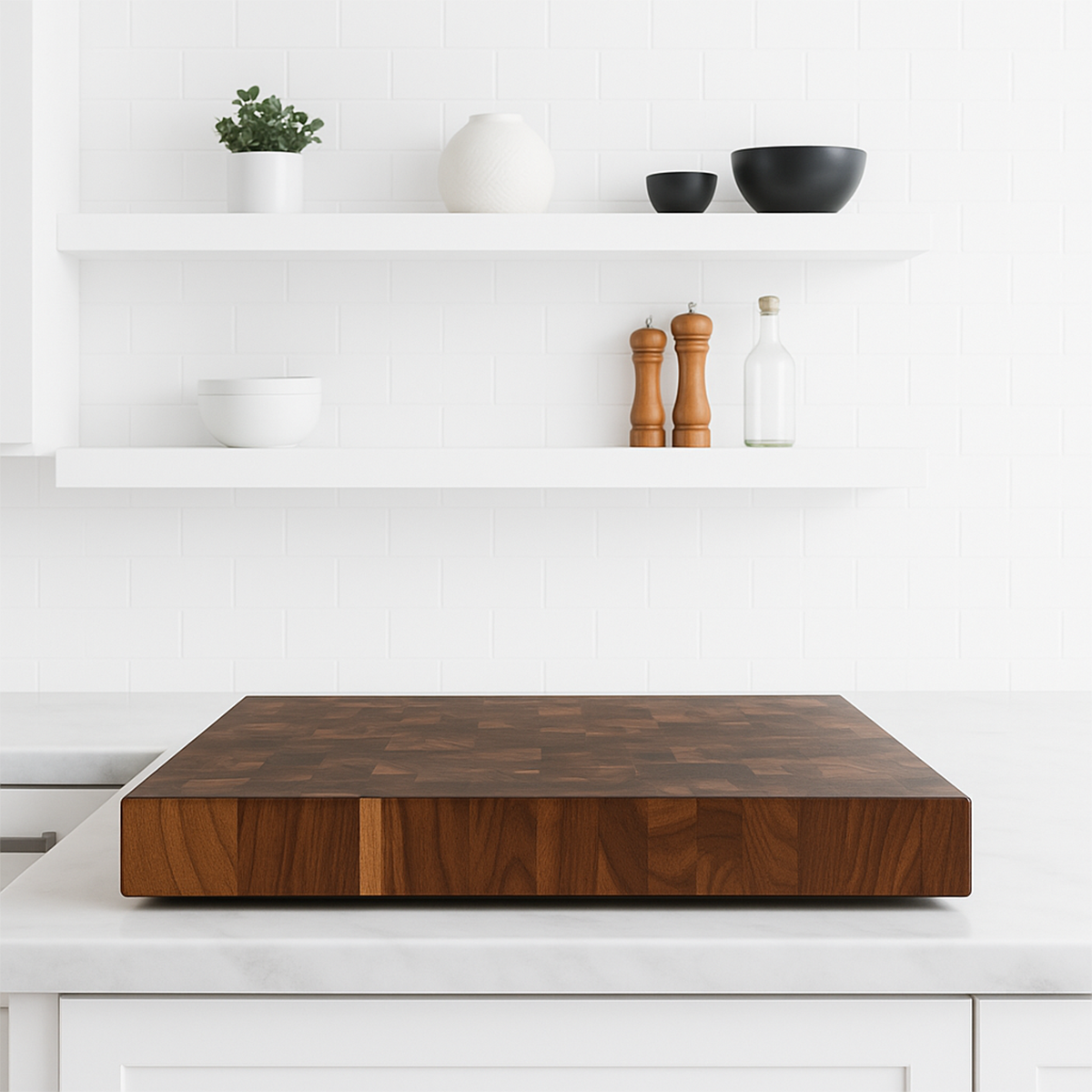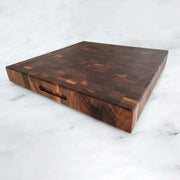 Experience true craftsmanship with the Walnut End Grain Butcher Block "The Beaumont XXL". Made with solid walnut in the chaos pattern, this massive and robust carving board features an end grain surface that is sure to command attention. Its strength will survive tough tasks and is ideal for carving and presentation.