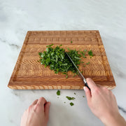 Upgrade your kitchen with the natural strength and beauty of our larch wood cutting board. Known for its tight grain and natural resistance to bacteria, larch is the perfect wood for a board that’s built to last.