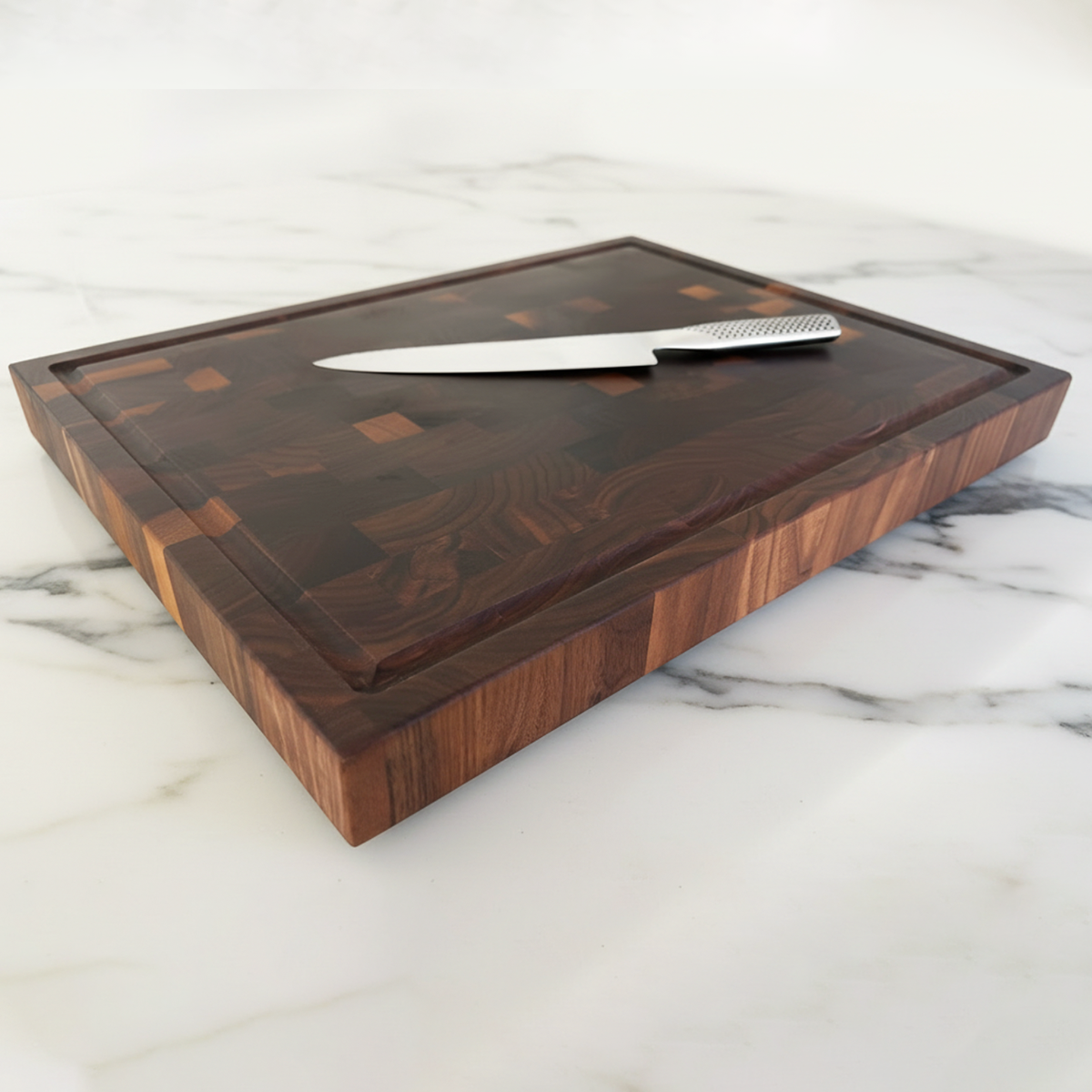 The Beaumont XXL is the pinnacle of luxury craftsmanship—meticulously built from solid walnut and featuring our signature chaos pattern, a bold mosaic of end grain cuts that highlight the wild beauty of natural wood. Oversized, unapologetically robust, and designed for performance and presentation, this butcher block is a statement piece in any chef’s kitchen.