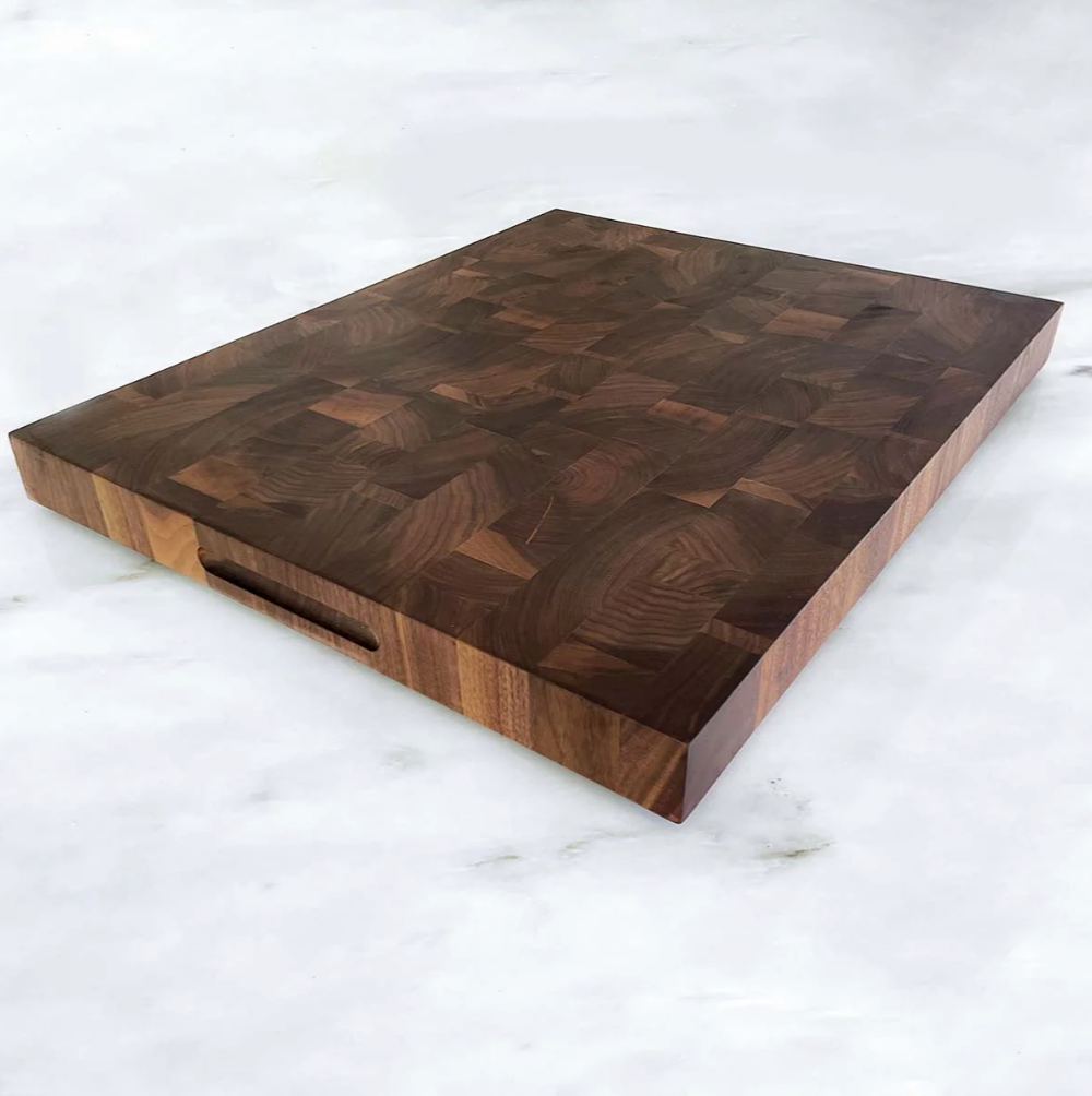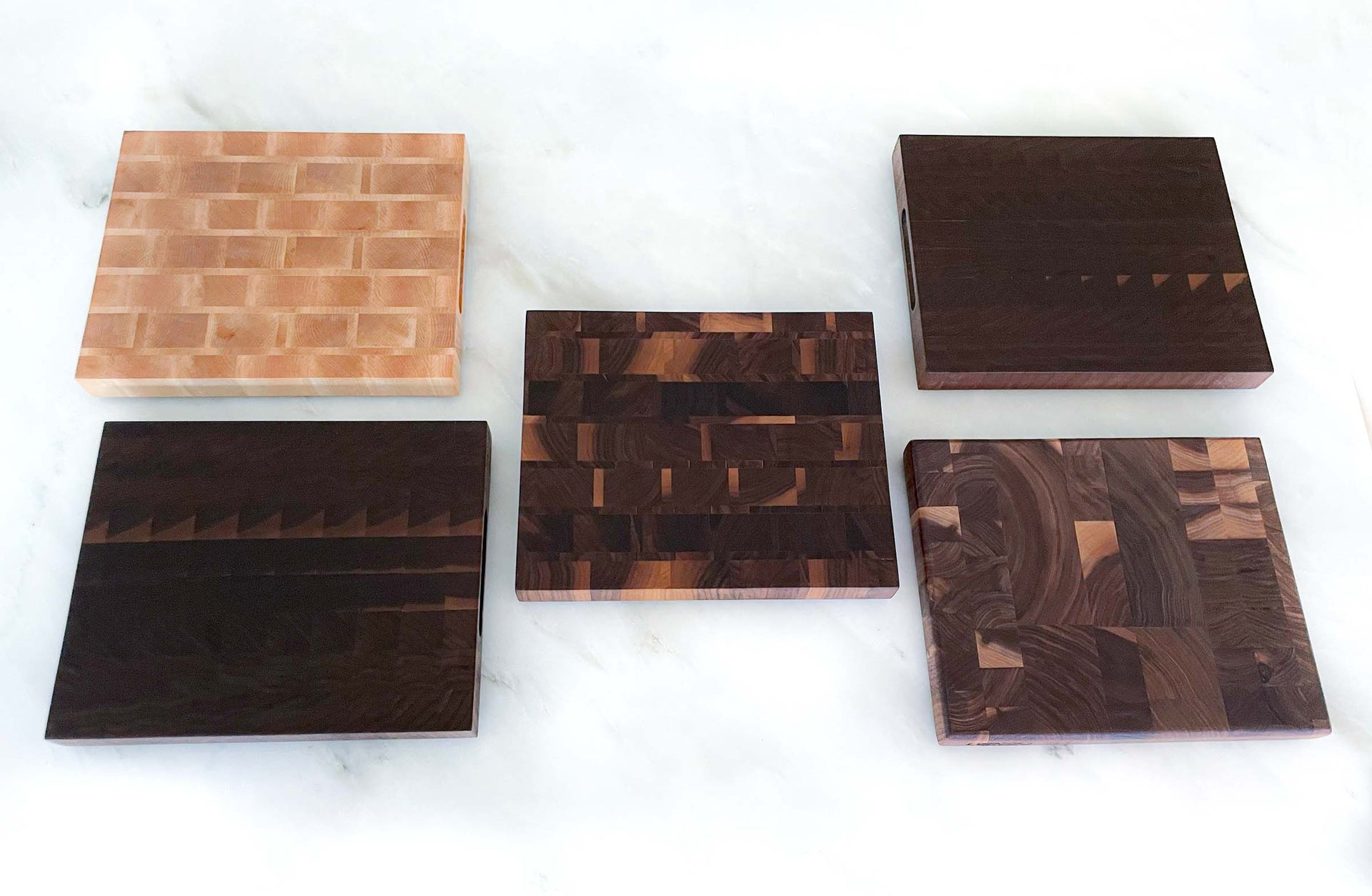 End Grain: End grain cutting boards are softer on your knives and don't show scratches as easily. They are distinctive, often in a checkerboard pattern.