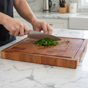 End Grain Construction – Built with an offset block pattern, the end grain surface absorbs the impact of each cut, keeping your knives sharper for longer. Its self-healing properties help conceal marks and ensure lasting performance.