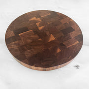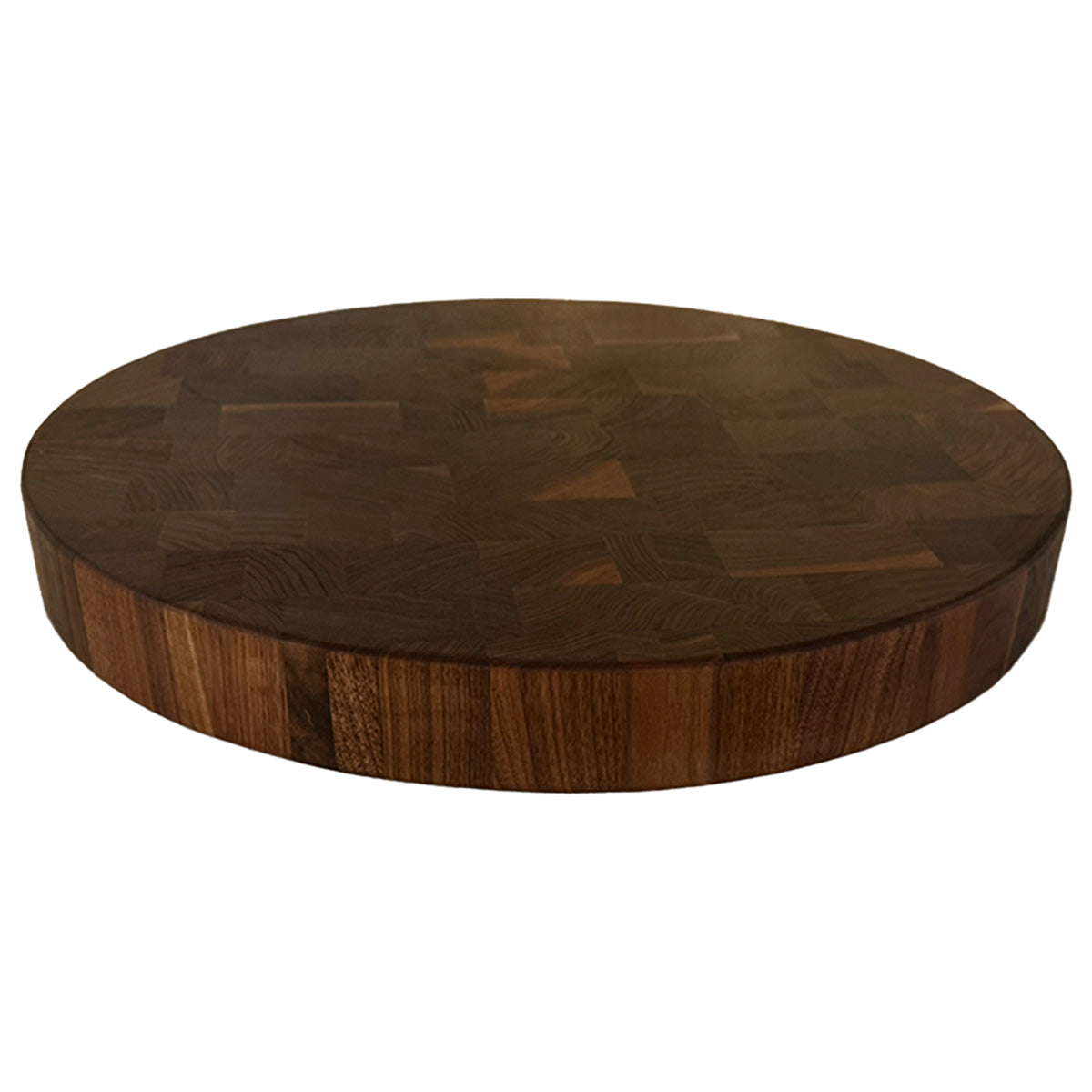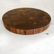 This 2-inch thick round end grain butcher block cutting board offers an 18-inch diameter serving surface. Its unique chaos pattern not only enhances durability but also creates a stunning contemporary design, making it both a functional kitchen essential and an eye-catching statement piece. Ideal for chefs and food enthusiasts, it combines cutting-edge craftsmanship with aesthetic appeal for precise cutting and elegant presentation.