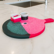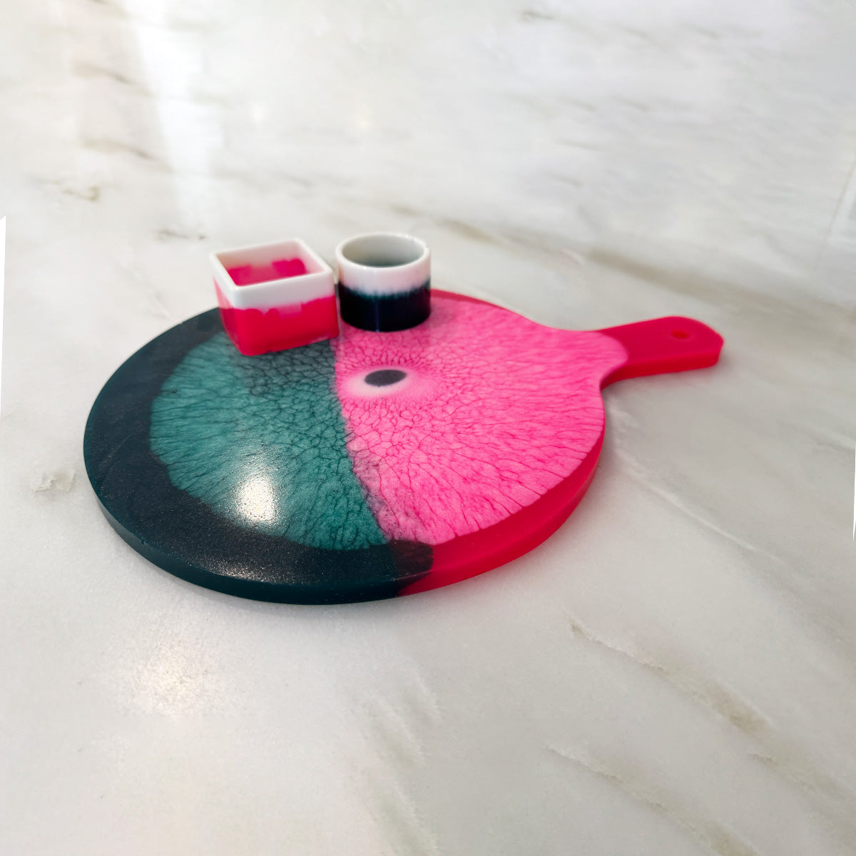 This Resin At The Disco Charcuterie Board is expertly handcrafted in New York City, combining vibrant colours of resin for a one-of-a-kind piece. Add a touch of artistry to your entertaining with this unique and functional board. Perfect for hosting, or as a gift for any art and food lover. There are two compartments fixed on the board for condiments, like olives etc.