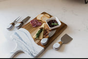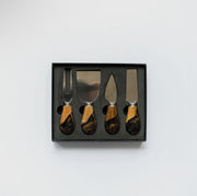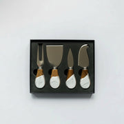 Elevate your charcuterie presentation with this four-piece cheese knife set, featuring striking gold quartz handles that complement any serving board. Each knife is precision-crafted for effortless slicing and spreading, making it an ideal companion to our artisan charcuterie boards. A sophisticated gift choice for entertaining enthusiasts and culinary connoisseurs alike. Each set comes in an elegant black gift box.